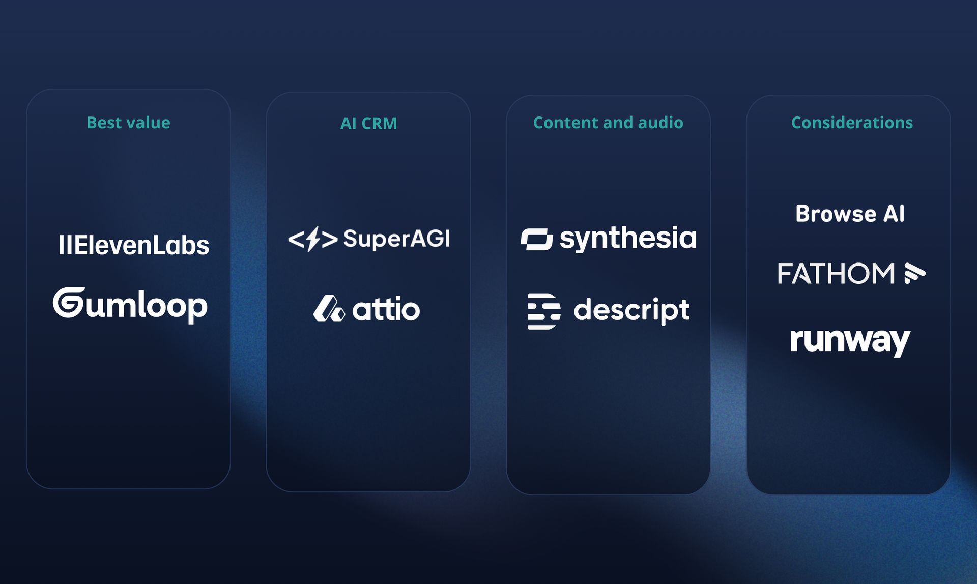 Best value: Gumloop (AI automation platform) and ElevenLabs (AI voice generator) offer competitive pricing with easy-to-use features suitable for mid-sized teams.