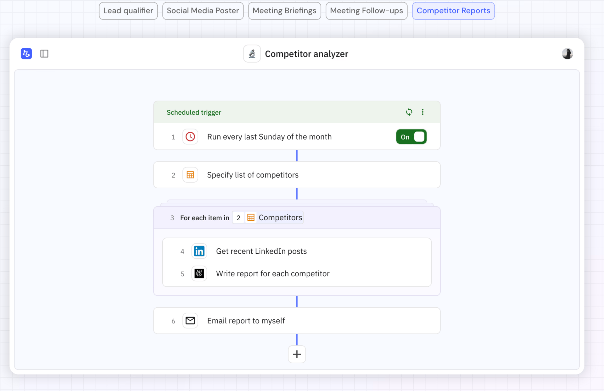 They have a marketplace of use-case based templates, including slack bots, social media video promoters and competitor reporting tools. Lots to explore and test.